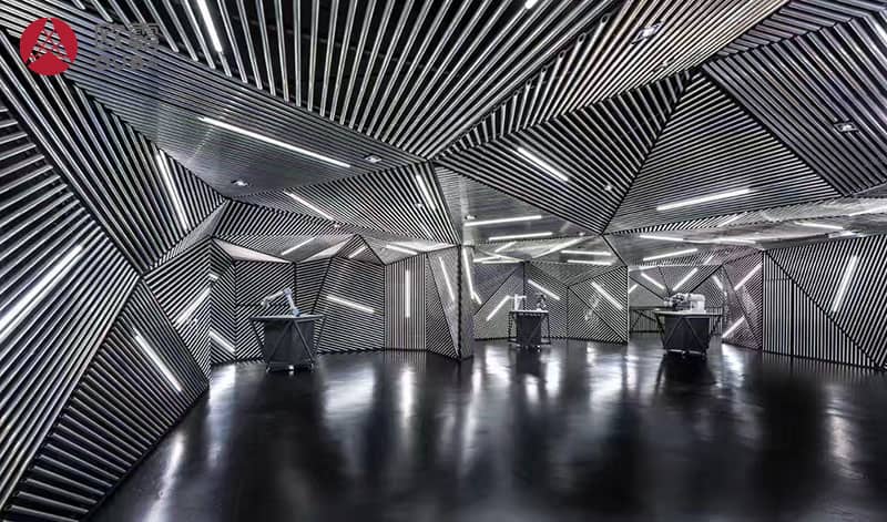 6、鋁圓通造型天花適用于地鐵站、高鐵站、車站、機場、大型購物商場、通道、墻面裝飾、建筑物鋁單板外墻等。