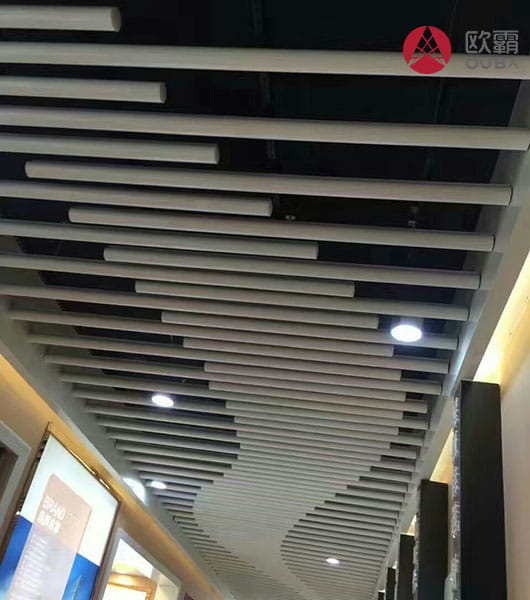 1、圓管條形天花是一種開方式,多元化的天花設計,吊頂垂掛式天花簡約,有利于面積較大的吊頂安裝天花,