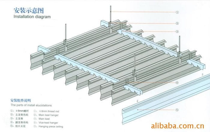 *材質(zhì):掛片為鋁合金,吊件及龍骨為烤漆鋼材