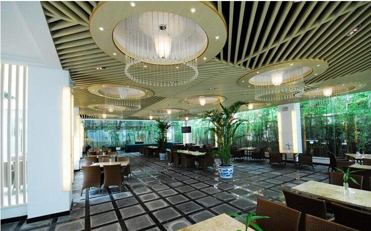 4、鋁方通天花具有開放的視野,通風(fēng),透氣,其線條明快整齊,層次分明,安裝后整個空間和諧 柔美的立體線條感,體現(xiàn)了簡約明了的現(xiàn)代風(fēng)格。