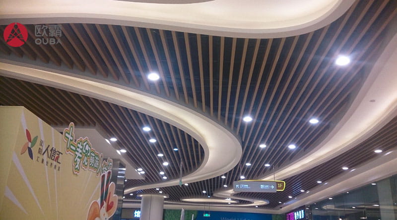 安裝不同的鋁方通是都可以選擇不同的高度和間距,可一高一低,一疏一密,加上合理的顏色搭配,令設(shè)計千變?nèi)f化,能夠設(shè)計出不同的裝飾效果。同時,由于鋁方通是通透式的,可以把燈具,空調(diào)系統(tǒng),消防設(shè)備置于天花板內(nèi),以到達(dá)整體一致的的完美視覺效果。