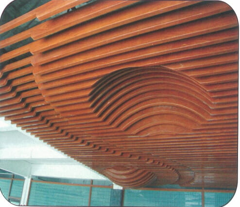 2、鋁方通天花垂片可拉彎弧形,弧形垂片的出現(xiàn)為設(shè)計(jì)師提供更為廣闊的構(gòu)思空間,以創(chuàng)造出更獨(dú)特美觀的作品??蛇x擇不同的垂片高度或間距,可一高一低,一疏一密,加上合理的顏色搭配,令設(shè)計(jì)千變?nèi)f化,能設(shè)計(jì)出各式條樣的裝飾效果。