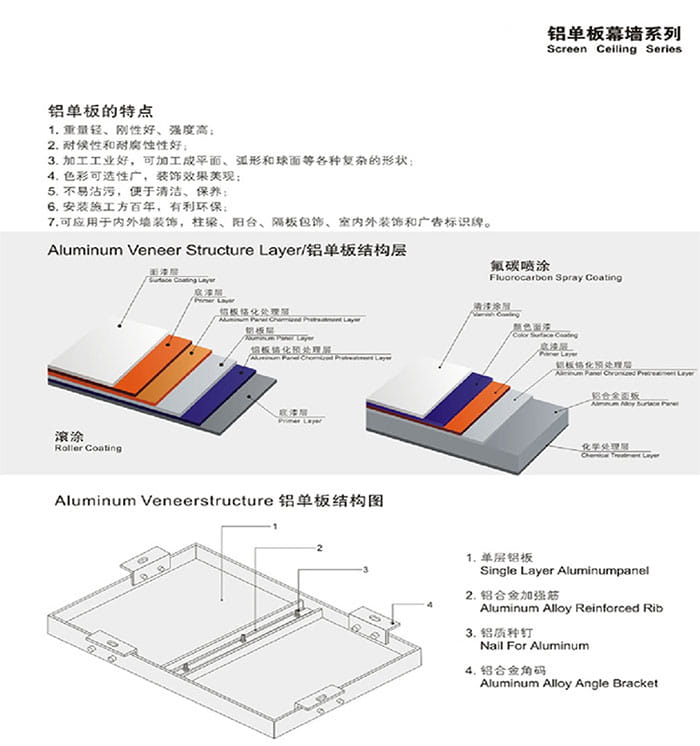 鋁單板輕量化,剛性好、強度高、不燃燒性、防火性佳、加工工藝性好、色彩可選性廣、裝飾效果極佳、易于回收、利于環(huán)保。