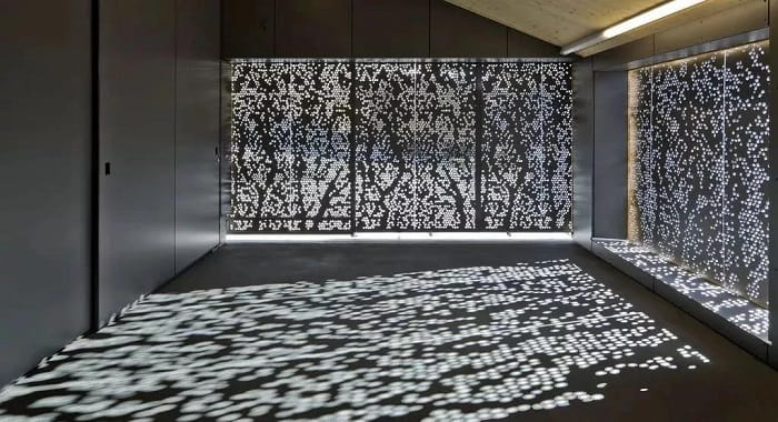 穿孔板特殊的效果通過圖案,光線的交流打破了室內(nèi)外的界限,讓細節(jié)之處耐人尋味。墻面,樓體,頂面都可以運用,你不妨試試。