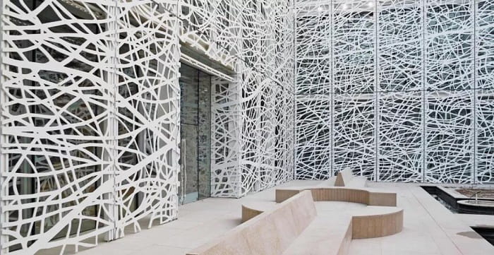 我們經(jīng)常看見的那些圖案精美的圍墻,建筑幕墻,雕塑,燈具等等,它們有一個共同的特點—穿孔板,雖然名字不夠出彩,但是它絕對是集美貌與才華與一身。