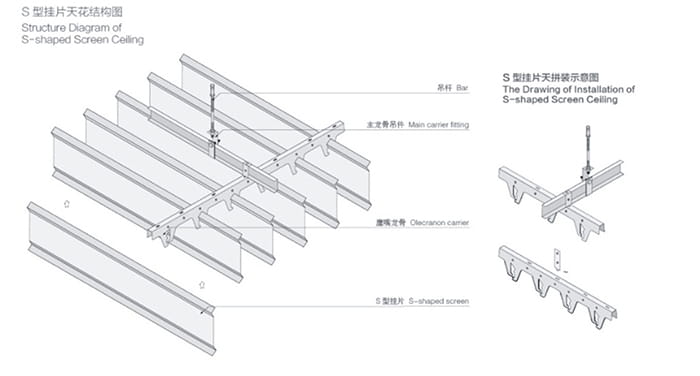 斜角S型掛片:通透、防風(fēng)、極具方向性,通透開(kāi)闊,立體感強(qiáng)烈,可調(diào)節(jié)裝飾空間視覺(jué)高度,搭配不同燈光效果,展現(xiàn)明快、飄逸的裝飾風(fēng)格,防風(fēng)碼安裝結(jié)構(gòu)使產(chǎn)品有效防風(fēng)。